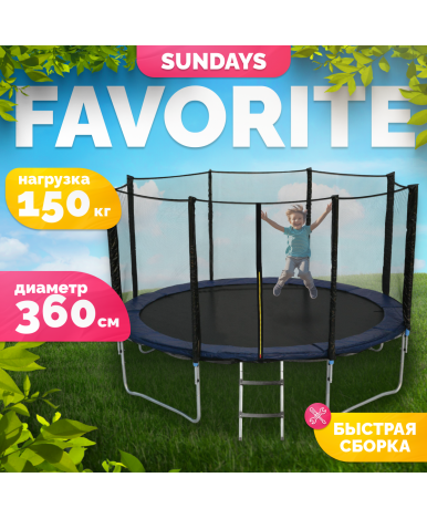 Батут Favorite 12FT — современное решение для активного отдыха и развлечений на свежем воздухе. Сочетание черного и синего цветов придает изделию стильный вид, а качественные материалы обеспечивают долговечность и безопасность. Стальная рама и полипропиленовое прыжковое полотно выдерживают нагрузку до 150 кг, что делает батут подходящим для взрослых и детей.