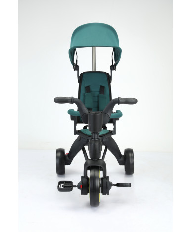 Удобное сиденье со спинкой и трехточечный ремень безопасности для комфорта и защиты ребенка.
