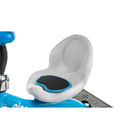 Переднее колесо 24 см и задние 21 см обеспечивают плавный ход и маневренность. Регулируемый руль (1–2 см) и комфортное сиденье (смещение на 1–2 см) помогают подстроить посадку по мере роста ребенка. Высота педалей 10–15 см рассчитана на удобное вращение без лишней нагрузки на ноги.