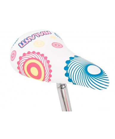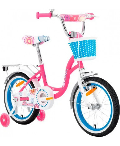 Прочная стальная рама открытого типа обеспечивает долговечность и устойчивость. Вес конструкции составляет 12.5 килограммов. Розовый цвет, дополненный контрастными деталями и графическими элементами, формирует яркий и привлекательный внешний вид. Транспорт поставляется в разобранном виде, что упрощает его хранение и транспортировку.