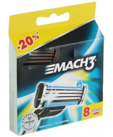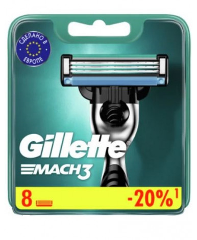 Бритье с бритвой Gillette Mach3 гладкое и эффективное! В комплекте восемь сменных кассет для бритья.