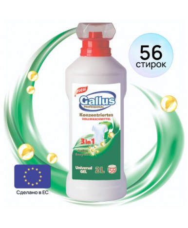 Гель для стирки GALLUS Professional универсальный 3в1 2 л (5301312) концентрированный универсальный гель для стирки белых и цветных тканей. Эффективно стирает все виды тканей даже при низких температурах. Всегда соблюдайте рекомендации производителей одежды, особенно в отношении температуры стирки. Хорошо встряхнуть перед использованием.