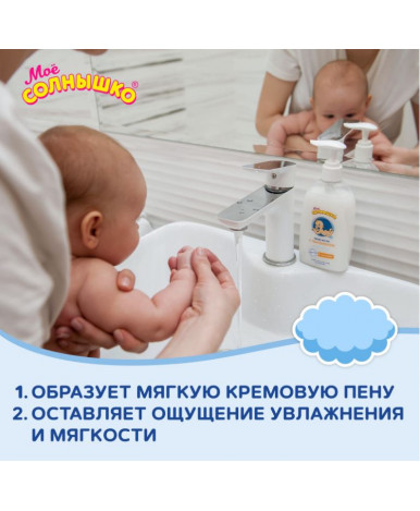 Бережно очищает тело и ручки малыша. Специальная формула крем-мыла с содержанием D-пантенола образует мягкую кремовую пену и обеспечивает особо нежный уход за детской кожей, оставляя ощущение увлажнения и мягкости.