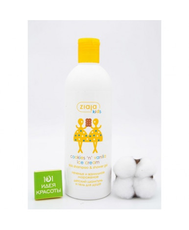Мягкий шампунь с запахом ванильного мороженого. Сочетает в себе свойства шампуня и геля для душа. Содержит мягкие моющие компоненты растительного происхождения. Действие: Образует шелковистую и кремовую пену. Не сушит кожу, мягко очищает тело и волосы ребенка. Предотвращает спутывание, облегчает расчесывание даже длинных волос. Способ применения: Нанесите небольшое количество шампуня на влажные волосыи вспеньте. Тщательно промойте теплой водой. Основные ингредиенты. Провитамин В5 (Д-пантенол) , глицерин , кокосовые гликозиды.
