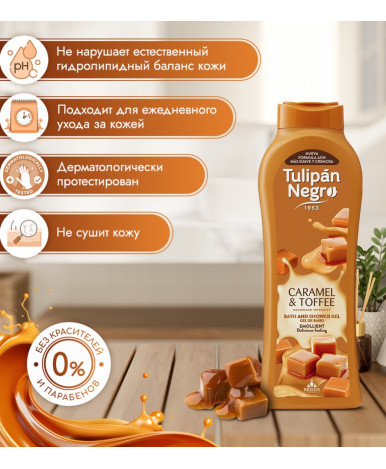 Сладкий, волнующий, проникновенный аромат геля для душа «Карамельный крем» от бренда Tulipan Negro гармонично дополняет его деликатные очищающие свойства. Средство оказывает также эффективное смягчающее действие на кожу, даря ей заветные шелковистость и бархатистость после гигиенической процедуры.