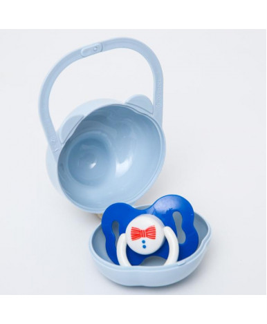 Футляр-"мишка" для пустышки "Пластишка" позволяет защитить пустышку от пыли и грязи на прогулке или в пути благодаря плотному замку в верхней части футляра. За ручку-замок можно пристёгивать его к сумке, ручке коляски, кроватке или стульчику. Гладкая глянцевая поверхность футляра приятна на ощупь, а округлый футляр удобно лежит в руке. Легко моется изнутри и снаружи.