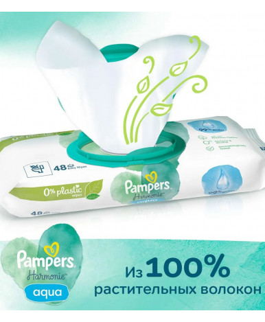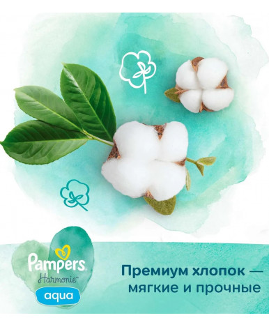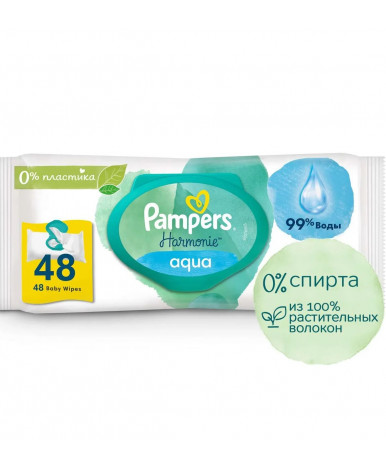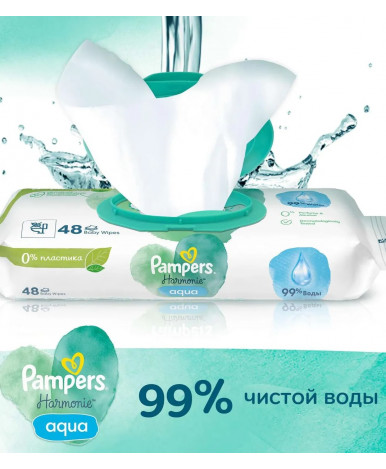 Влажные салфетки Pampers Aqua Harmonie с органическим хлопком. Содержат 99% чистой воды , помогая обеспечить защиту нежной кожи вашего ребенка. В их составе нет спирта и отдушек. Оставшийся 1% это прошедшие дерматологические испытания мягкие очищающие вещества и проверенные Pampers ингредиенты, которые помогают поддерживать баланс рН и защищать кожу малыша от раздражения. Влажные салфетки Aqua Harmonie безопасны для нежной кожи новорожденного, включая попку, ручки и личико.
